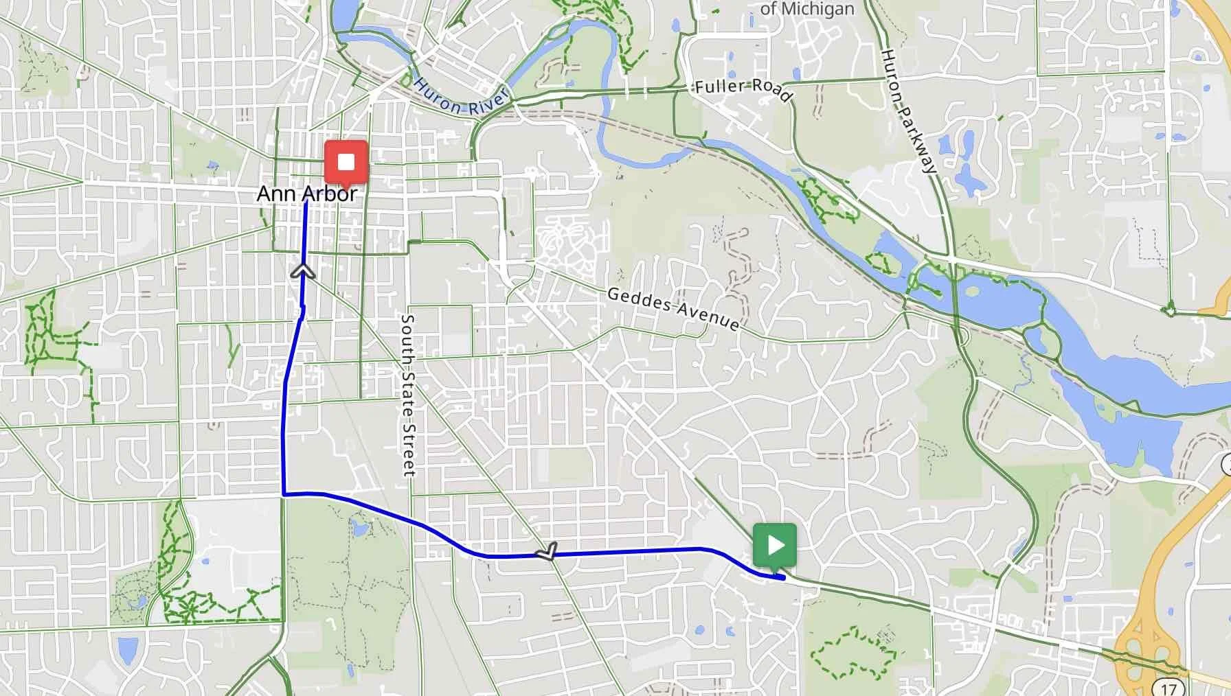 Where: Starting at the empty parking lot of 2381 East Stadium (beside BearClaw Coffee) and riding West toward Aldi’s on East Stadium Boulevard, ending at Tmaz Tacos (2529 Dexter Ave, Ann Arbor, MI 48103).